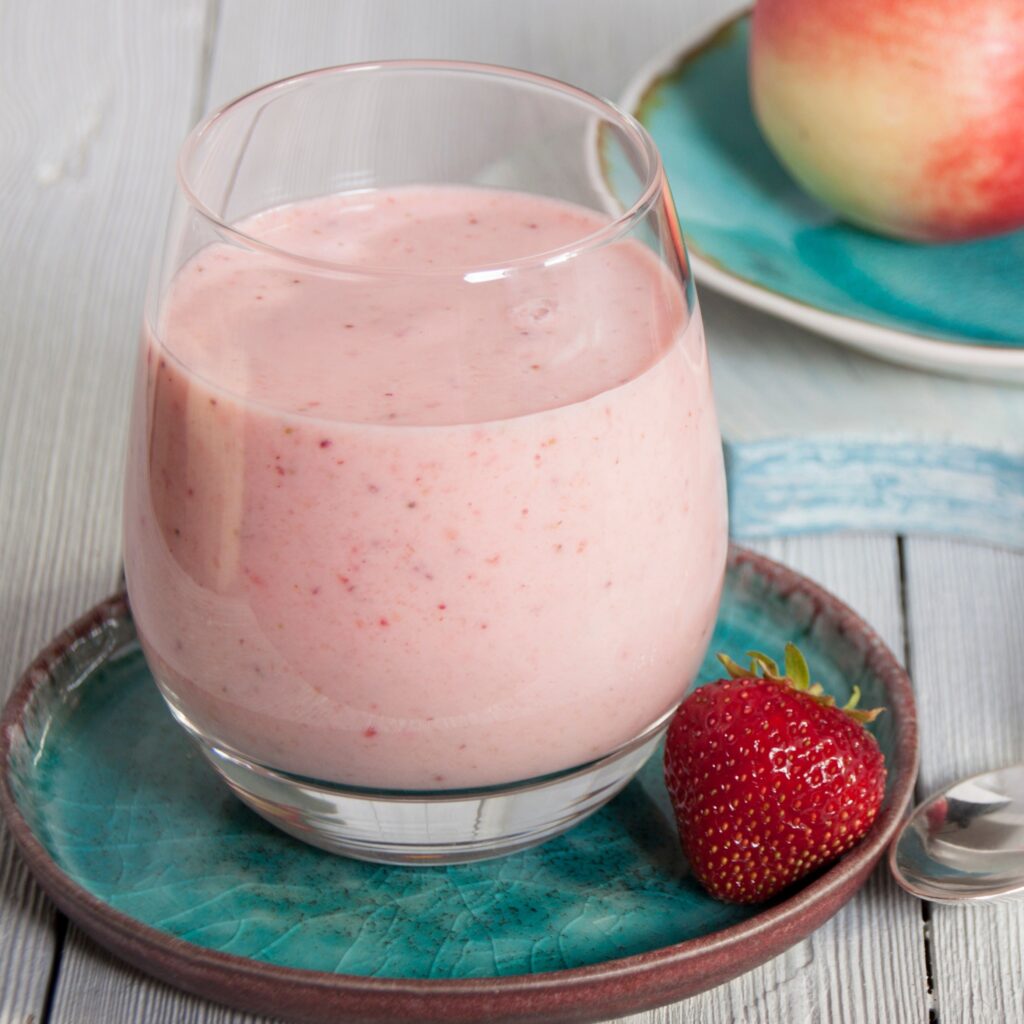 Crémeux à base de fraises des bois fraîches et de fromage blanc de brebis local pour une boisson gourmande et sucrée.